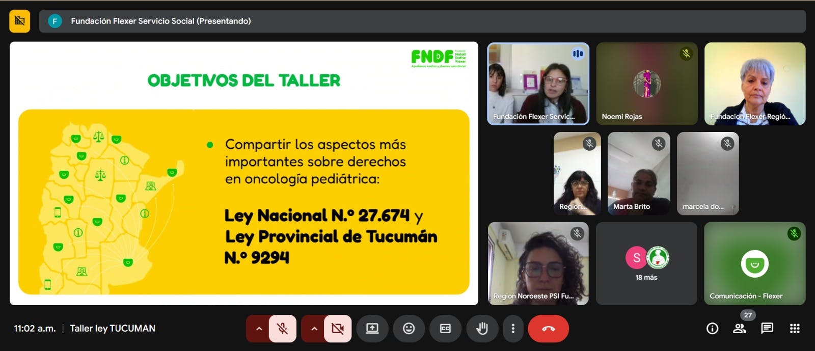 El miércoles 27 de agosto nuestro equipo profesional de Apoyo al Tratamiento realizó un nuevo Taller Virtual sobre Trámites y Gestiones vinculados a la Ley de Oncopediatría (Ley 27.674) y Ley Provincial de Tucumán (Ley N.º 9294). Participaron del encuentro 31 personas de la provincia de Tucumán, entre ellas, familiares de pacientes, profesionales de equipos de salud y personal de ONGs.